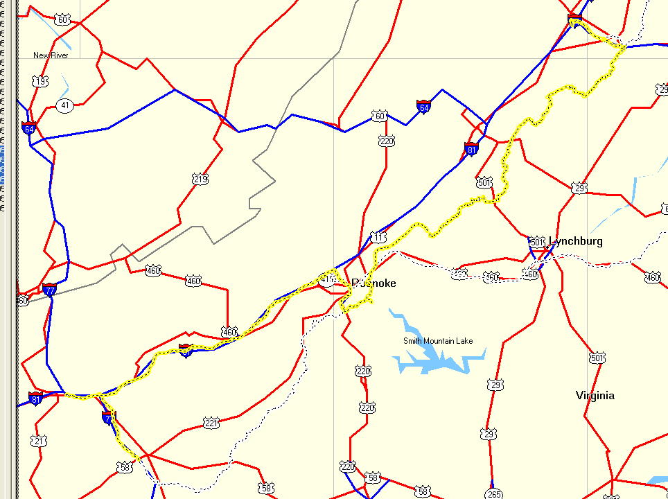 The real vacation begins! 380 miles via the Colonial Parkway, Route 5 past plantations, a stop at the Appomattox Courthouse, out to Lynchburg and Roanoke then on the Blue ridge Parkway Heading South! Got off the Parkway and stayed the night in Hillsville, VA. Started at an elevation of 8', went as low as 13' below sea level, as high as 3478' (Rocky Knob) and ended the night at 2446'